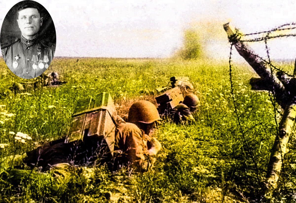 На Курской дуге воевал в районе знаменитой Прохоровки. Летней ночью взвод его занял позиции, тут немцы и полезли. Осатанели, бьют без передыха изо всех стволов. Командир взвода убит, старший сержант на себя командование принял. Приказ один: держаться до последнего своего смертного часа. И держались воины. Хотя и танки на них пёрли, и авиация с неба отнюдь не пряники кидала. Устояли.