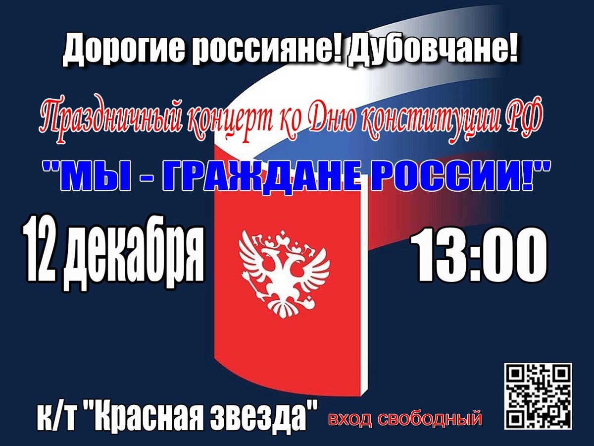 12 декабря в зале кинотеатра «Красная звезда» состоится праздничный концерт, приуроченный ко Дню Конституции РФ.