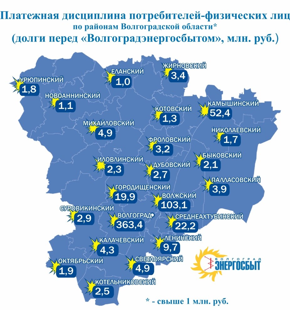 В злостных должниках по оплате электроэнергии числятся 130 769 жителей Волгоградской области. А общая сумма просроченной задолженности недобросовестных клиентов «Волгоградэнергосбыта» составила без малого 622 миллиона рублей.
