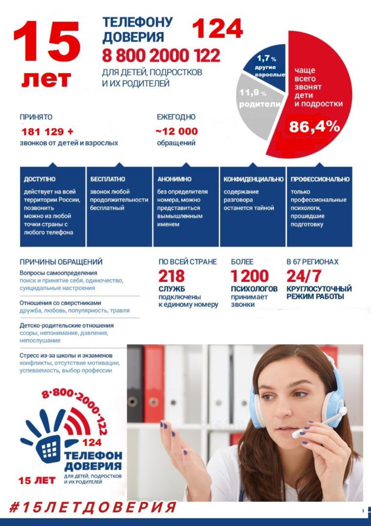 Детский телефон доверия с единым общероссийским номером 8 800 2000 122 и коротким номером 124 празднует 15-летний юбилей!