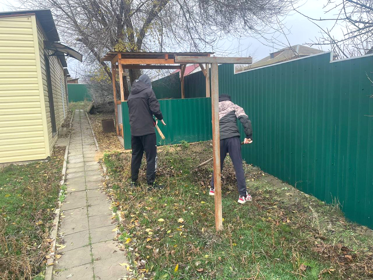 Волонтеры дружно взялись за работу: очистили двор от опавшей листвы, подмели территорию и привели в порядок приусадебный участок.