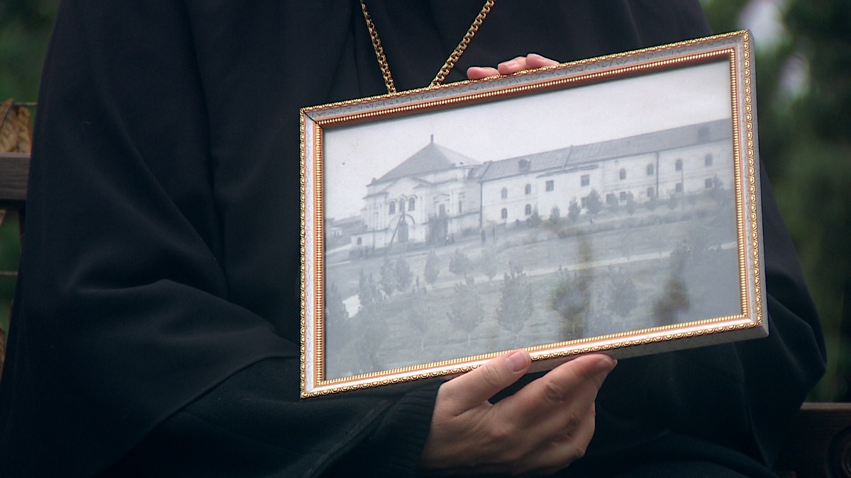 «Эта фотография изображает наш храм, видите, он обезглавленный, это годы, когда здесь размещалась школа-интернат, все строение сохранилось, но купола нет», – показала настоятельница Свято-Вознесенского женского монастыря игуменья Анна.