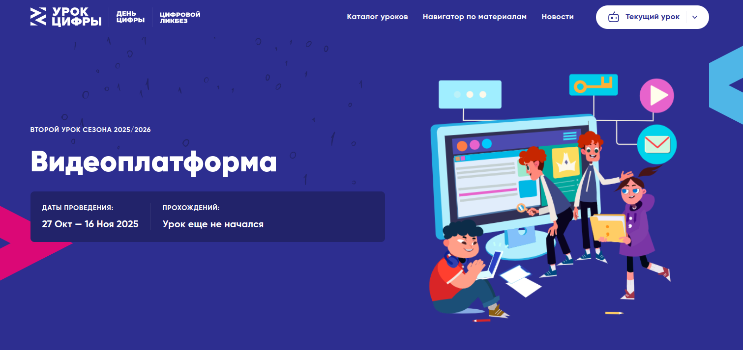 С 27 октября по 16 ноября VK проведет новый этап всероссийского проекта «Урок цифры» на тему «Видеоплатформа». Школьники узнают, как устроен современный сервис хранения и распространения видео на примере крупнейшей платформы VK Видео. Проект ежегодно реализуется АНО «Цифровая экономика» совместно с Минцифры и Минпросвещения России в поддержку федерального проекта «Кадры для цифровой трансформации» национального проекта «Экономика данных и цифровая трансформация государства», а также национальной цели «Технологическое лидерство».