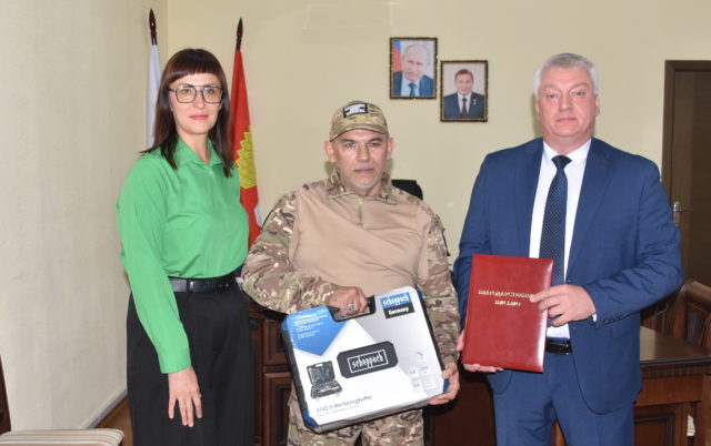 20 октября, в рамках мероприятий, посвященных Дню отца, глава Светлоярского района Владимир Фадеев вместе с начальником отдела ЦСЗН по Светлоярскому району Екатериной Пешковой вручил благодарственное письмо Волгоградской областной Думы Виталию Петровичу Кудинову.