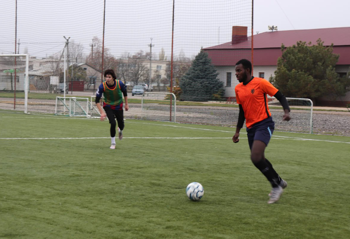 На поле встретились студенты из Дубовки и их сверстники из Гаити, Нигерии, Марокко, Кении и Гвинеи. С первых же минут матча стало ясно, что борьба будет напряженной и зрелищной.