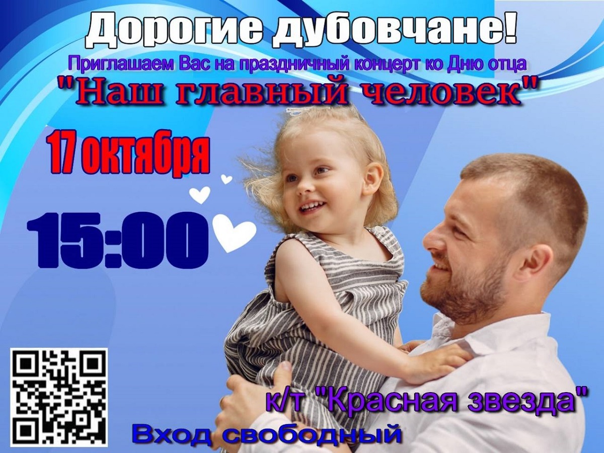 В преддверии праздника, 17 октября, Межпоселенческий передвижной центр досуга и методического обеспечения приглашает дубовчан в кинотеатр «Красная звезда» на концерт «Наш главный человек».