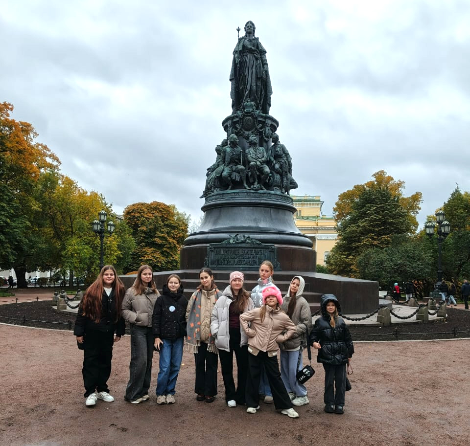 Мы побывали на Пискаревском мемориальном кладбище. Слушая рассказ экскурсовода о блокадном Ленинграде, невозможно было сдержать слез. Там мы увидели монумент «Мать-Родина» и возложили к нему цветы. Потом отправились на Дворцовую площадь и были изумлены великолепием Эрмитажа!